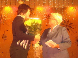 Е.Г. Токареву поздравляет Т.А. Бирюкова. |