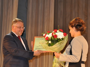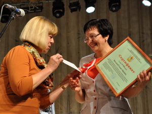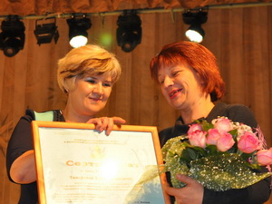 Сертификат департамента образования на 10 тыс. руб. за победу в номинации «За оригинальность и творчество в профессии» вручила воспитателю Таловского детского сада №1 общеразвивающего вида Таловского района Елене Токаревой заместитель председателя комитета по труду и социальной защите населения Воронежской областной Думы Оксана Хоронжук.