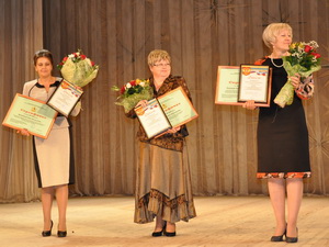 Торжественное награждение победителей Воронежского областного конкурса «Воспитатель года – 2014» (27 сентября 2014 года). На нижнем фото: А.В. Малявина, И.В. Анучина, Т.В. Попова.