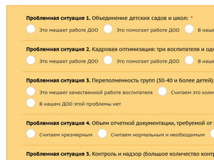 На Всероссийском форуме работников дошкольного образования «Ориентиры детства. 2.0», прошедшем 26 августа в Москве, принято нетривиальное решение – пригласить педагогическое сообщество к обсуждению проблем, которые, по мнению воспитателей, больше всего мешают работе дошкольных образовательных организаций, и озвучить свои предложения в форме послания президенту России. Обсуждение и голосование проходят на сайте Ассоциации развития качества дошкольного образования (АРКАДО) с 1 по 15 сентября 2019 года.