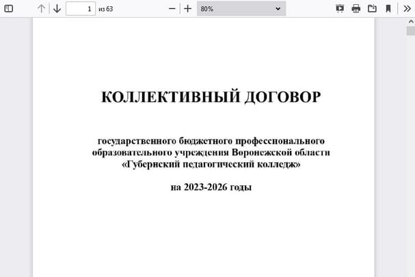 | Скриншот титульного листа коллективного договора на официальном сайте Губернского педагогического колледжа. |
