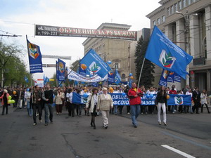 Сегодня Первомай собрал нас вместе под знаменами профсоюзов и различных политических партий. Мы строим гражданское общество. И каждый житель области имеет право на собственный взгляд на жизнь и политические пристрастия. При этом каждая партия обозначает главной целью улучшение жизни людей. Каждая видит в коррупции социальное зло. Каждая знает, как бороться с экономическими проблемами.