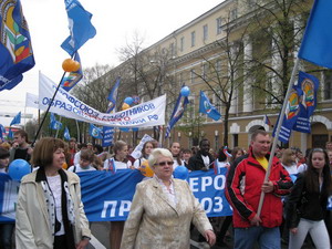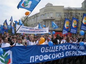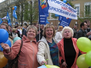 В этом году Первомай в нашей области прошел под девизом: «Работа! Зарплата! Достойная жизнь!» В Воронеже шествие большой колонны демонстрантов (в мероприятии приняли участие 17 тысяч человек, из которых 3 тысячи – члены областной организации профсоюза работников народного образования и науки РФ) от площади Победы по проспекту Революции к площади Ленина длилось около часа. Оно закончилось митингом на центральной площади города.