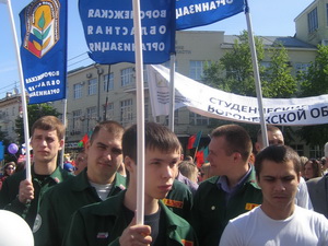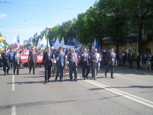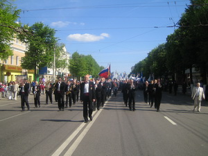 Всего более 30 тыс. человек собрали первомайские акции в Воронежской области (митинги, шествия состоялись в 17 районах). Из них 23,5 тыс. (в том числе 1,5 тыс. представителей образовательной отрасли) под звуки духового оркестра с флагами и транспарантами прошли по главной улице областного центра – проспекту Революции – от площади Победы до площади имени И.С. Никитина. Возглавляли колонну первые лица власти: губернатор области Алексей Гордеев, председатель обл. Думы Владимир Ключников, мэр Воронежа Сергей Колиух... «Даешь построение справедливости!» - таков девиз нынешнего Первомая.