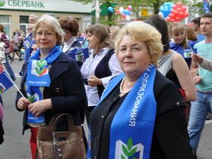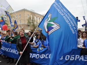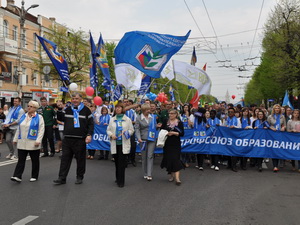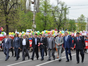Первомайское торжество в Воронеже в этом году по традиции началось праздничным шествием от площади Победы по проспекту Революции. Впереди колонны шел духовой оркестр. Следом председатель Воронежского областного Совета профсоюзов Алексей Овчинников и представители власти: губернатор Алексей Гордеев, председатель обл. Думы Владимир Ключников, исполняющий обязанности главы администрации Воронежа Геннадий Чернушкин, члены Совета Федерации от нашей области Геннадий Макин и Сергей Лукин, главный федеральный инспектор по Воронежской области Александр Солодов и еще несколько официальных лиц. Среди демонстрантов особенно выделялись члены областной организации профсоюза работников народного образования и науки – за счет новеньких синих шарфов, а также флажков, пилонов и флагов с профсоюзной символикой. Шествие закончилось митингом, на котором впервые за несколько последних лет слово было предоставлено и рядовым труженикам, которые поведали правду о своем нелегком житье-бытье…