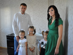 Некоторые новоселы в день сдачи домов уже были в своих квартирах. Приехавших из столицы высоких гостей пригласила на новоселье семья Струковых – папа Геннадий, мама Карина и три симпатичные маленькие дочки. Все уместились за большим обеденным столом, угощались чаем, блинчиками, пирожными, а главным блюдом стал необыкновенный торт, на котором красовались три «высотки» с надписью «ПЖСК «Учитель»» и самые настоящие ключи от квартиры!