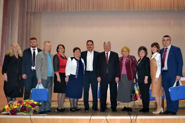 Председатель Федерации независимых профсоюзов России с делегатами конференции от Воронежской областной организации профсоюза образования: Л.В. Тореева, Р.С. Сапелкин, А.Н. Мильцин, С.И. Сычева, В.С. Перфильева, А.П. Воропаев, М.В. Шмаков, О.Н. Калашникова, О.А. Паринова, М.Ю. Меркулова, А.М. Ходунов (Воронеж, 15 октября 2020 года).