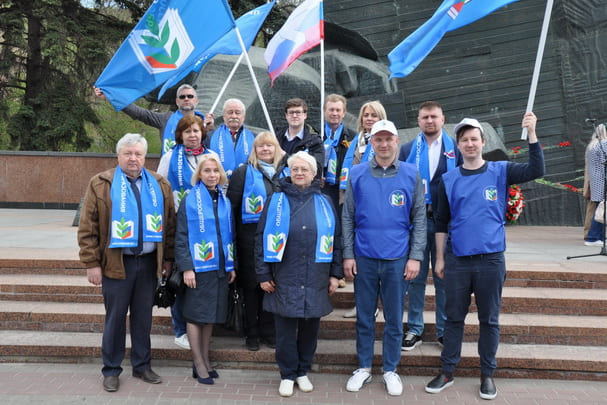 Представители Общероссийского Профсоюза образования на митинге у Памятника Славы в Воронеже (28 апреля 2022 года).