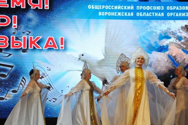 Во Дворце творчества детей и молодежи Воронежа 17 мая прошел заключительный концерт седьмого по счету ежегодного смотра художественной самодеятельности профсоюзных организаций учреждений образования нашего края. Смотр традиционно проводится Воронежской областной организацией профсоюза образования. Девиз конкурса в этом году – «Время! Мир! Музыка!». В ходе награждения победителей, состоявшегося сразу после того как концерт закончился, бессменный режиссер-постановщик всех представлений смотра, Валентина Шорина, дала очень высокую оценку талантам воронежских педагогов: «Сегодняшний концерт вполне можно представлять высоко-высоко и долго-долго. Спасибо вам большое за ваше творчество. Надеюсь, что в будущем году мы с вами обязательно увидимся!»
