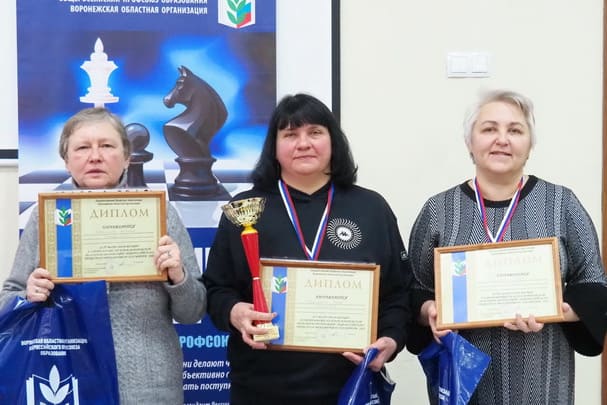 Финал VII регионального шахматного турнира на Кубок Воронежской областной организации Общероссийского Профсоюза образования. Тройка лидеров среди женщин: Н.Г. Воронцова, Н.С. Машинина, И.Н. Титаренко.