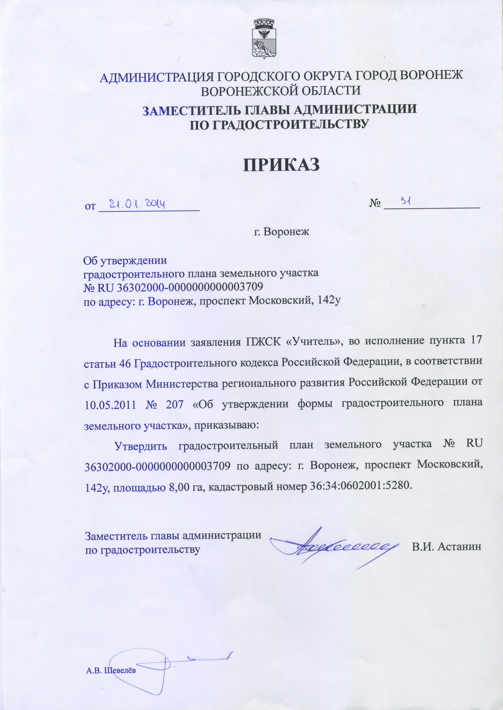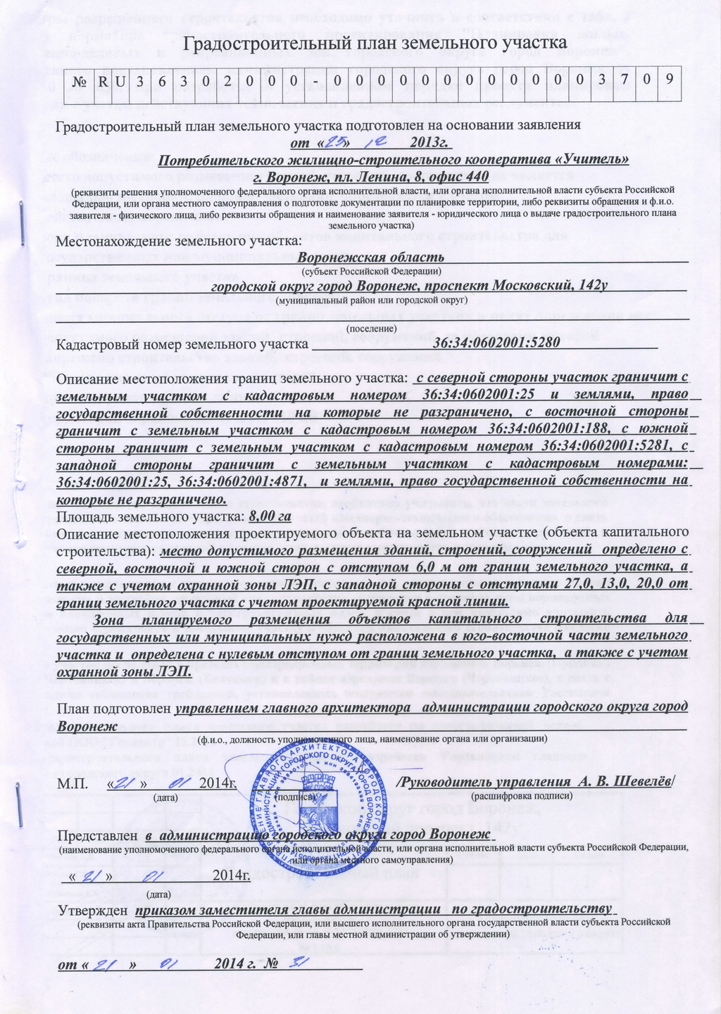 Градостроительный план на земельный участок потребительского жилищно-строительного кооператива «Учитель» по адресу: