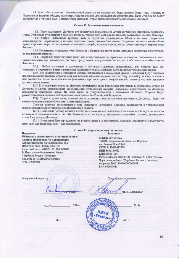 ПЖСК «Учитель» с ООО «Алтиус Инжинеринг и Констракшн»