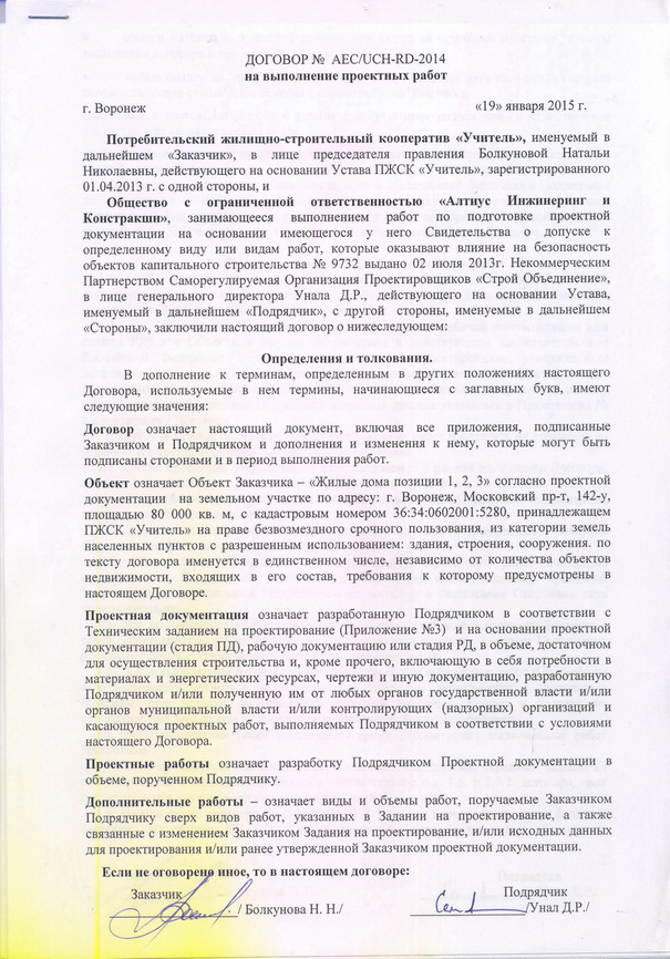 ПЖСК «Учитель» с ООО «Алтиус Инжинеринг и Констракшн»