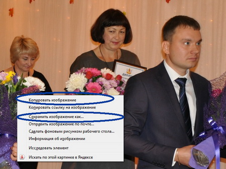 Кликните правой клавишей мыши и из предложенных вариантов выберите «Копировать изображение» или «Сохранить изображение как…»: