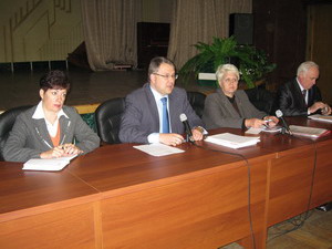 В президиуме совместного совещания руководителей районных органов управления образованием и профлидеров области (7 октября 2009 года): заместитель руководителя департамента образования, науки и молодежной политики области Марина Мовшина, руководитель департамента образования, науки и молодежной политики Олег Мосолов, председатель обкома профсоюза работников народного образования и науки РФ Тамара Бирюкова, заместитель руководителя департамента труда и социального развития области Иван Данилов.