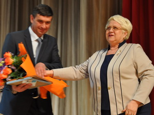 После официальной части «Профсоюзный щит» поздравил «Учителя года Воронежской области – 2015» Софью Дроботову с победой!