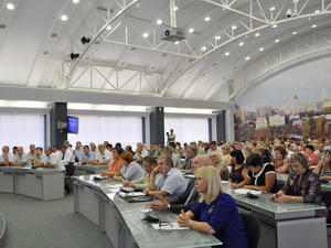 Областное совещание педагогов прошло 21 августа в бизнес-инкубаторе Воронежского государственного архитектурно-строительного университета. В его работе приняли участие заместители глав администраций муниципальных районов и городских округов области по социальным вопросам, руководители отделов образования администраций, ректоры вузов, директора учреждений среднего профессионального образования и школ-интернатов, председатели райкомов профсоюза.