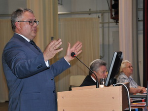 Пленарное заседание открыл Иван Алейник. После приветственного слова и краткой информации о системе образования в возглавляемом им районе Иван Григорьевич предоставил слово Олегу Мосолову.