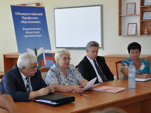 Поднимающихся на сцену членов президиума совещания – главу администрации Россошанского района Ивана Алейника, заместителя губернатора Юрия Агибалова, руководителя областного департамента образования, науки и молодежной политики Олега Мосолова и председателя обкома профсоюза работников народного образования и науки РФ Тамару Бирюкову – собравшиеся встретили дружными аплодисментами.