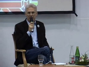 Полемика на Всероссийском студенческом форуме: А.А. Фурсенко (верхнее фото), А.М. Ходунов (нижнее фото).